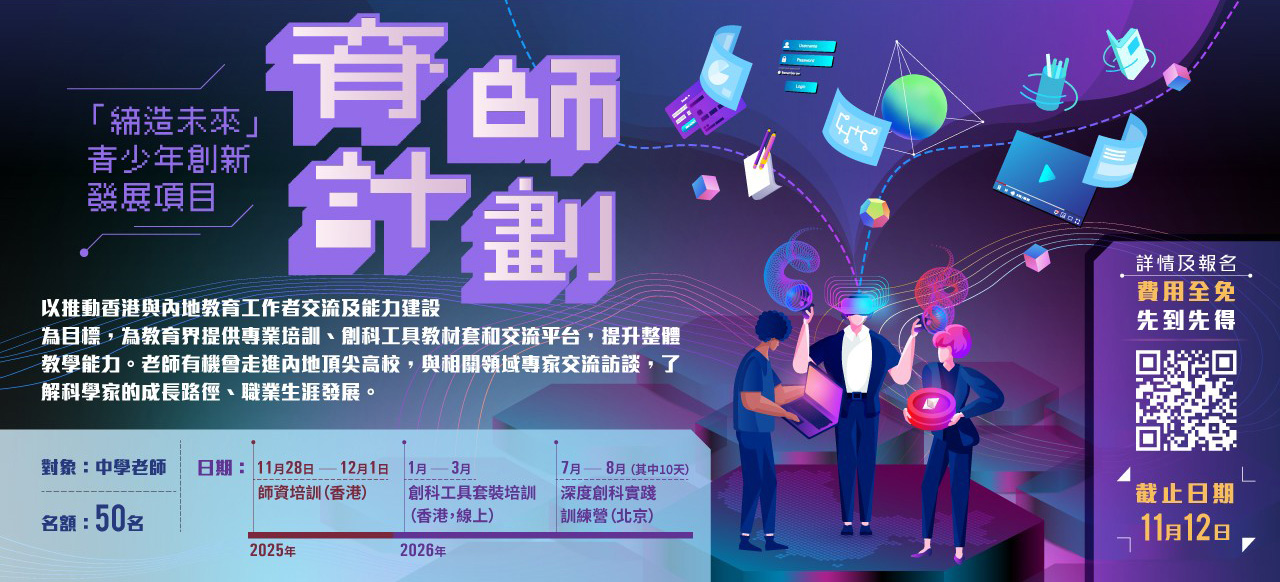 - 資源優先:參與教師可優先獲得「新時代築夢計劃」及「深度創科實踐訓練營」的學校參加資格。
